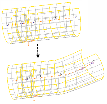 Similarly, when you delete a spine point, the associated section is deleted too. More usefully, if the data at one or more spine points is modified, the orientation of the section relative to the spine is preserved.
