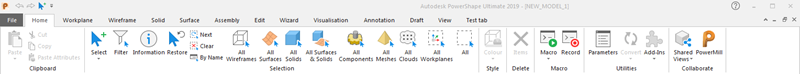 PowerShape uses a customizable ribbon interface, containing tabs with two button types and extended tooltips.