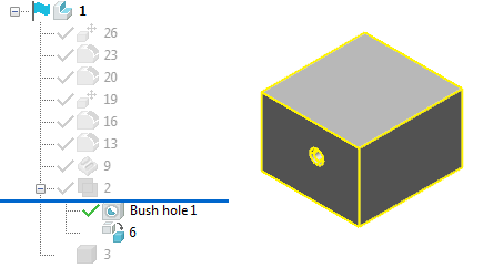 - Add a hole feature to the solid. The hole is added to the tree in the sub-branch above the general solid feature.