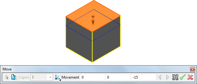- Move the face by clicking Edit tab > Transform panel > Move, and entering
