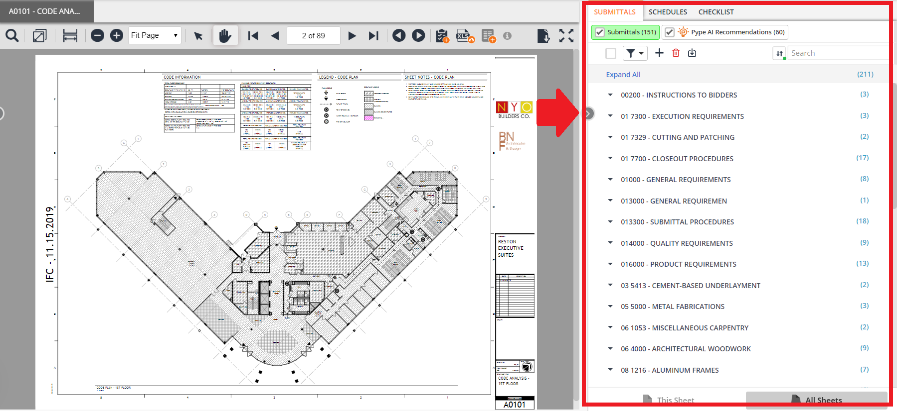 In order to start adding, deleting, editing, or copying submittals in the PlanView module, please expand the submittal viewer on the right-hand side.