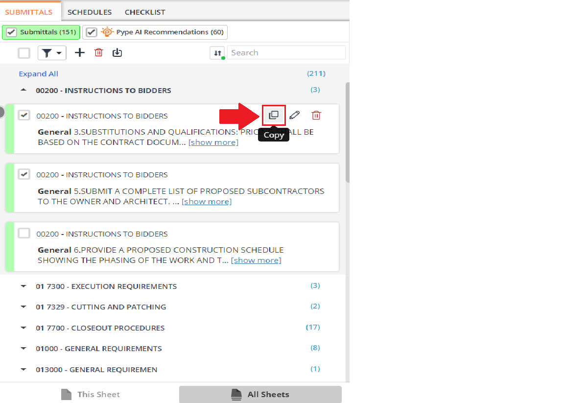 After making a copy, you can click the "Edit" button on the newly created submittal in order to update the information contained in it.