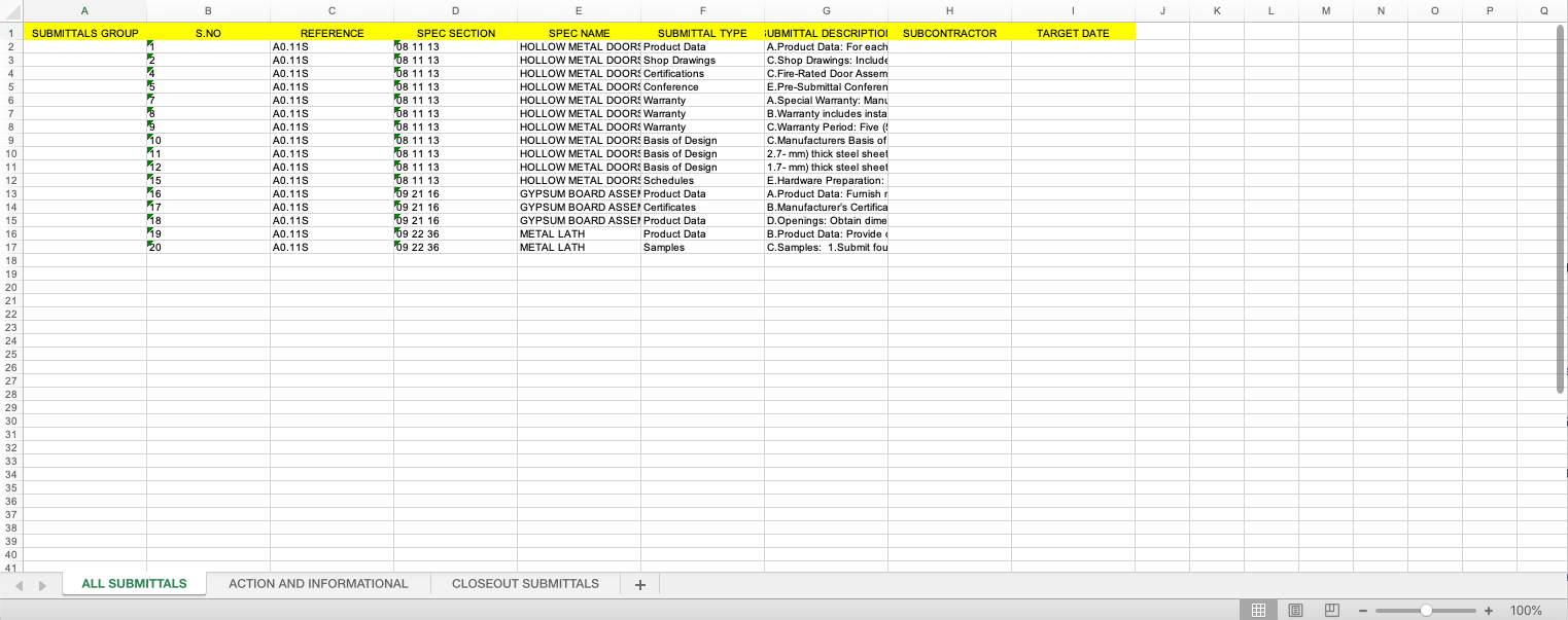 Step 5: You have successfully downloaded your Submittal log into .xls or .csv format and it is now ready for import into the project management platform being used for the project.