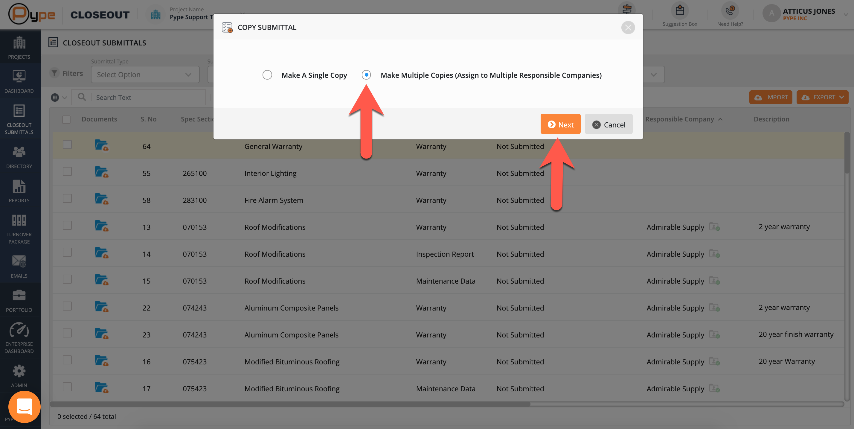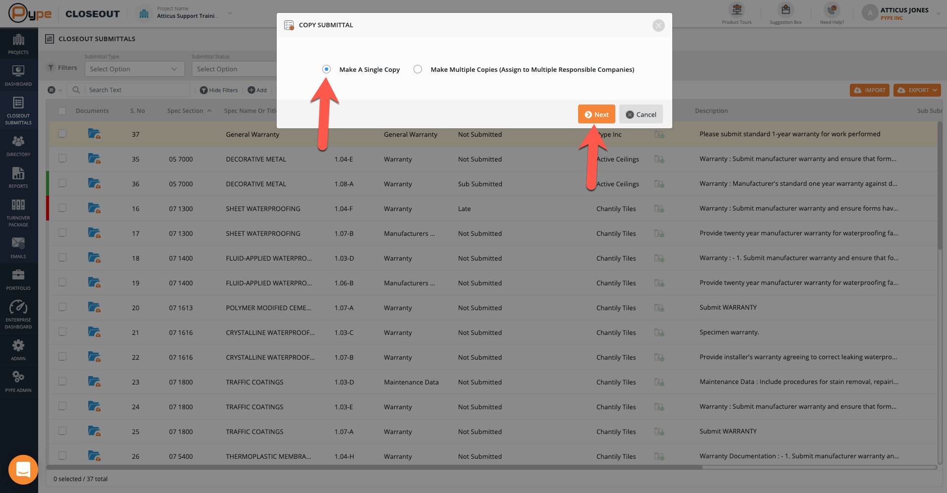 Select Make a Single Copy to make one copy of the submittal, then click Next.