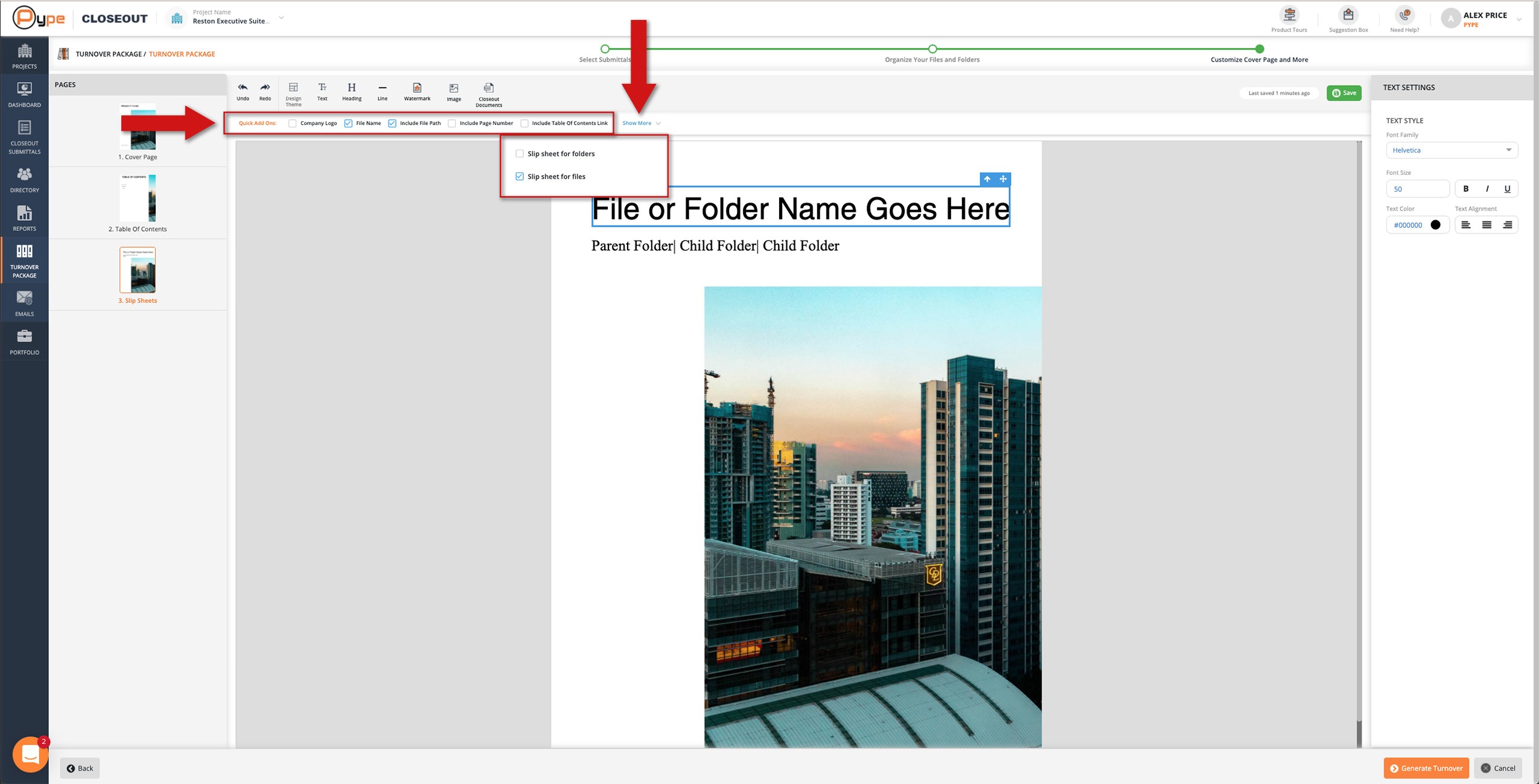 Slip sheets are the pages that will be inserted between your documents in the final package. You can customize your slip sheets using the same tools described above.