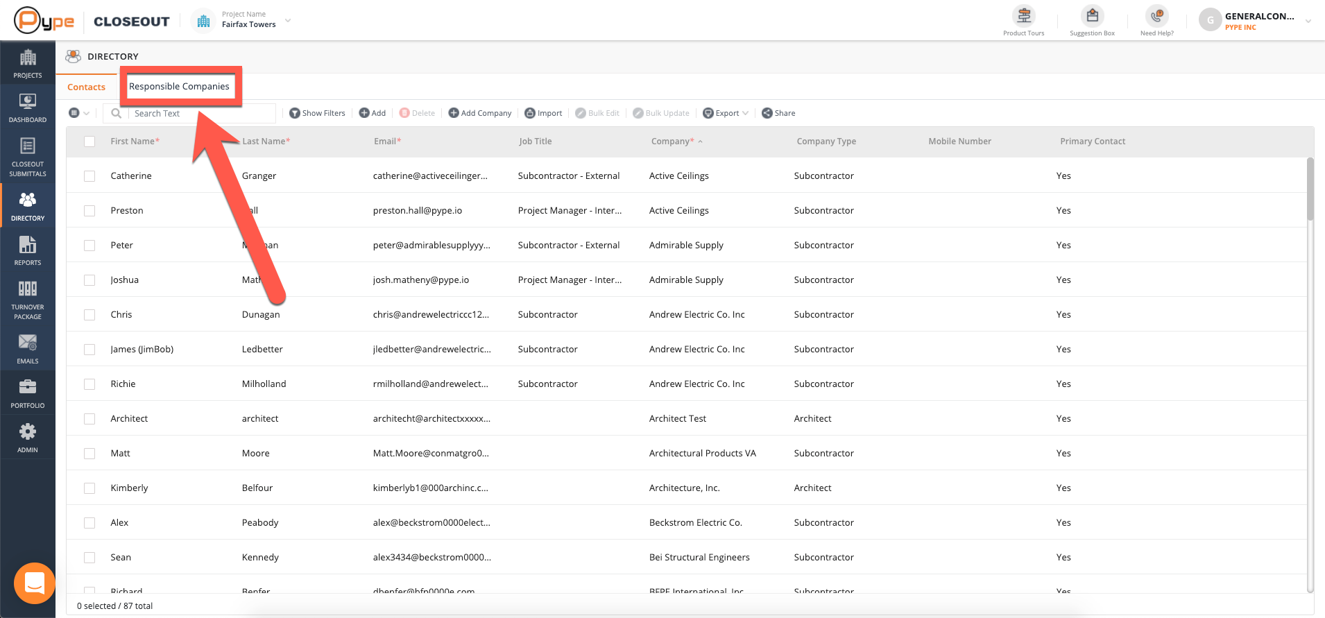 To export companies, click on the Responsible Companies tab at the top of your Directory.