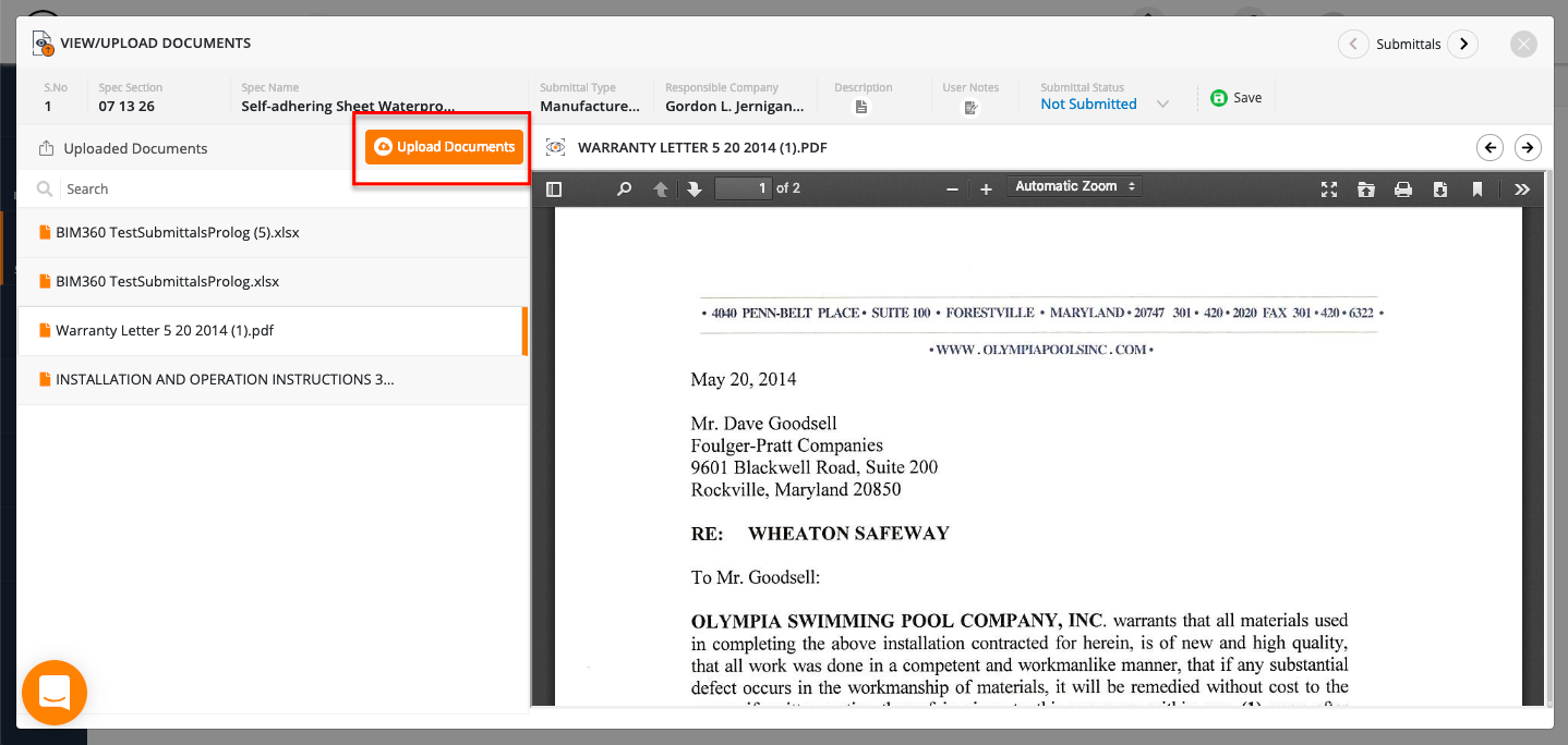 From there, you will be able to see what files have already been uploaded and choose to upload additional attachments by clicking on the orange Upload Documents button.
