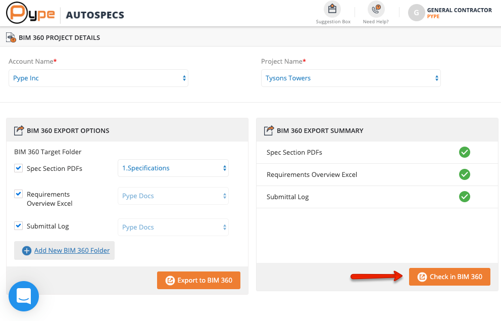 You have successfully exported docs into BIM 360. Click on 'Check in BIM 360' to view the files in BIM 360.