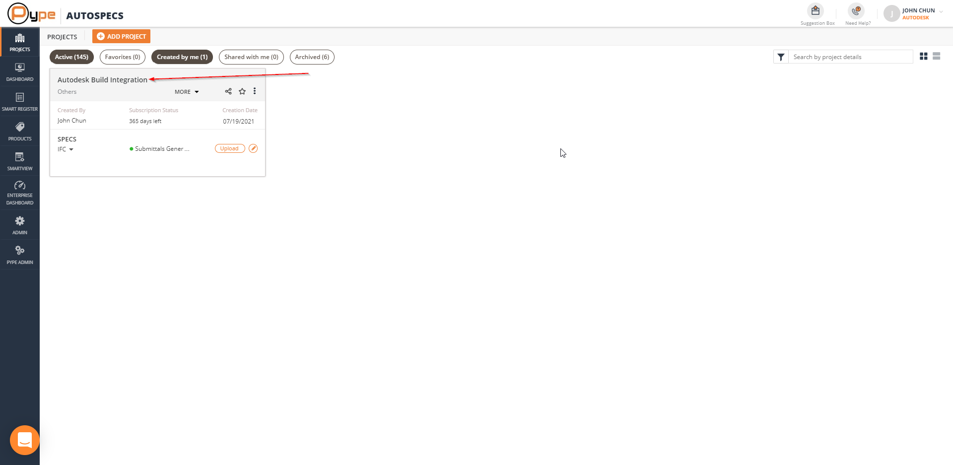 Locate your project in AutoSpecs. Click on the project name and navigate to the Smart Register.