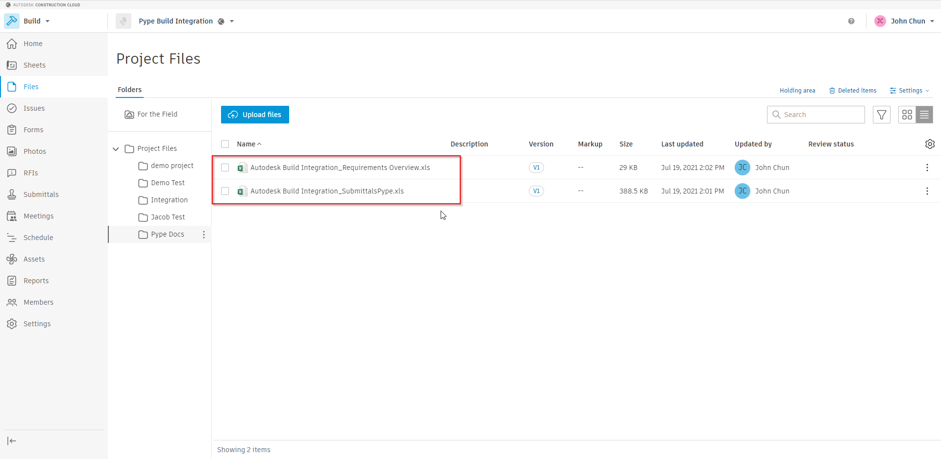 - View in Autodesk Build will open Autodesk Build where you can view your exported submittals