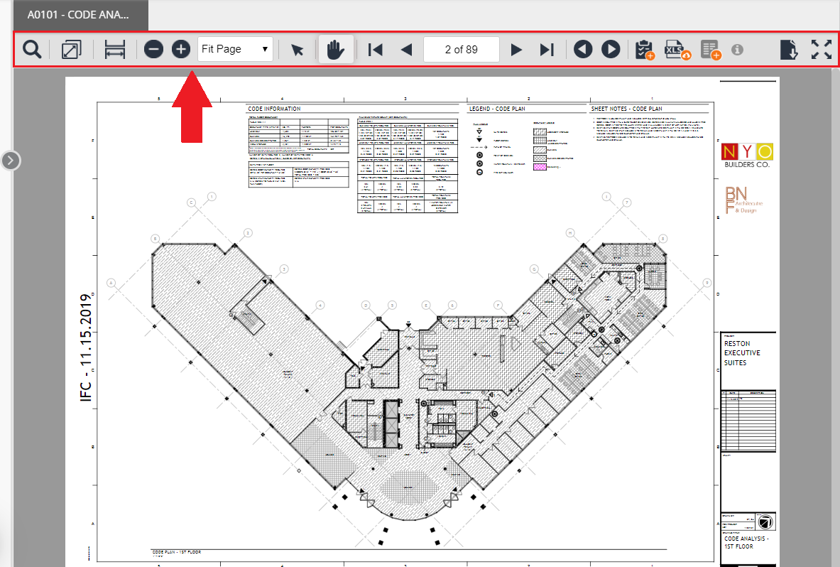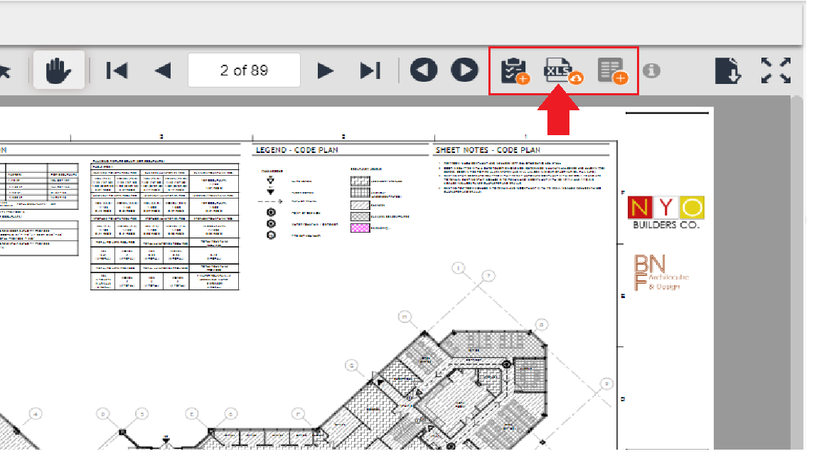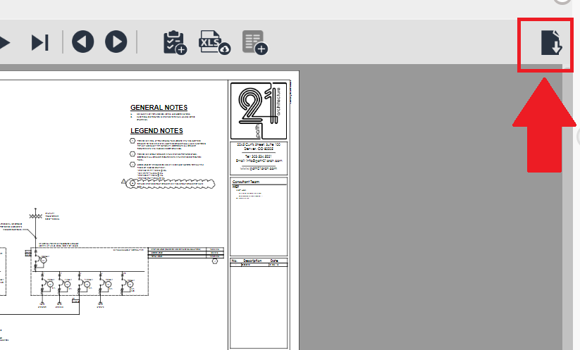 The last tool available on the toolbar is the "Download" button. This allows you to download the selected drawing sheet with all of the located submittals highlighted on the sheet. The sheet will download in PDF format.