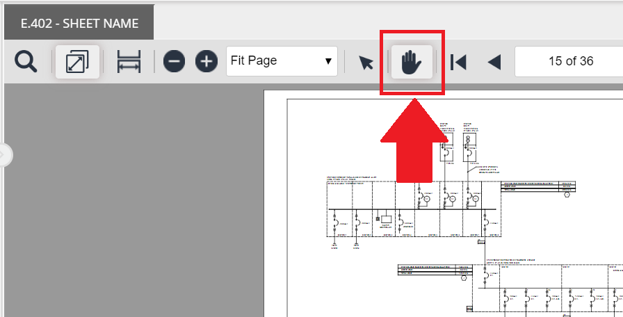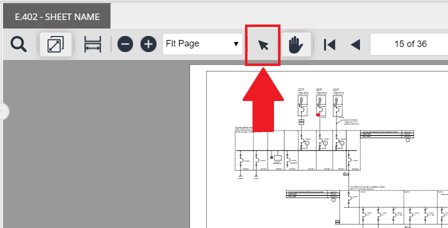 The cursor tool is the standard mouse navigation tool available in PlanView. If you use another tool (text select or hand tool) and would like to change back to the default cursor tool, please select the button highlighted below.