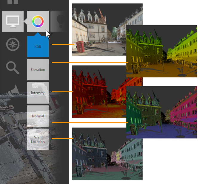 Display points in the real-world colors originally captured by a camera built into the scanner. This color is based on RGB (red, green, blue) color values.