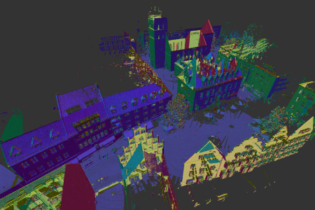 Display points with colors assigned to the x, y, z values associated with the direction of the normal for the point.
