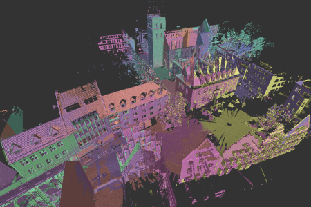Display the point cloud with each scan location differentiated by color.