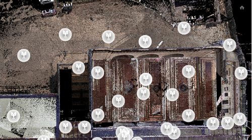 When clicked, the canvas goes into a scan group editing mode. Each scan location is represented by an icon in the canvas.