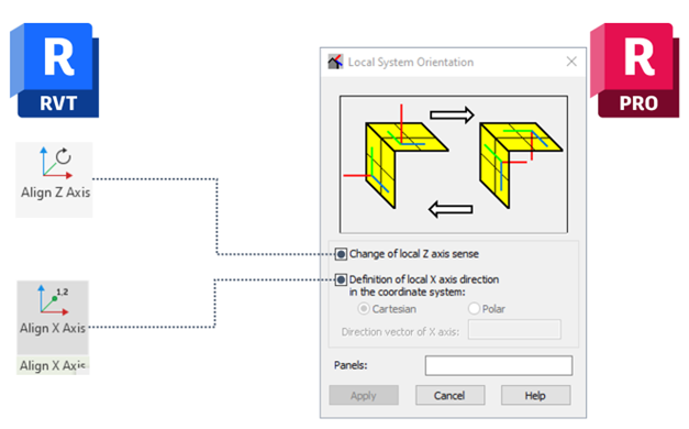 Revit 2025 release introduced local coordinates system (LCS) setting possibilities. They can be set for analytical members and analytical panels. The new LCS definition is transferred to Robot Structural Analysis model.