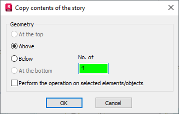 Note: If you did not have additional Stories in the project, you could use Copy story… and have the software create the story and copy the contents.In the Copy contents of a story dialog box, set the Geometry to Above and the No. of repetitions to 4 as shown below.