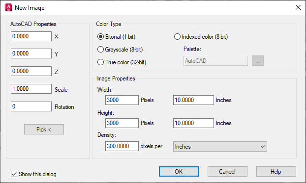 After you have created a new image, you must save it to establish a link between the drawing and the image file. To define the properties for more than one new image, use the New Image tab on the AutoCAD Raster Design Options dialog box.