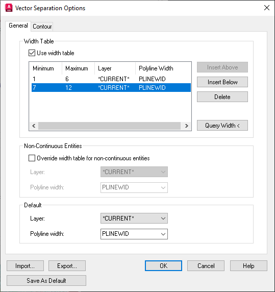 - Separate vectors based on the width of the raster lines by using the General tab of the Vector Separation Options dialog box. For example, you can assign thin dimension lines to a separate layer from the thicker object lines. Simply specify two or more ranges of line widths for the raster entities, then assign a layer and polyline width value to each range.