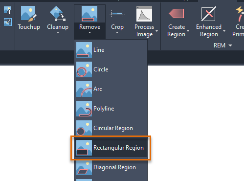 On the ribbon, click Raster Tools tab Edit panel Remove drop-down menu Rectangular Region.