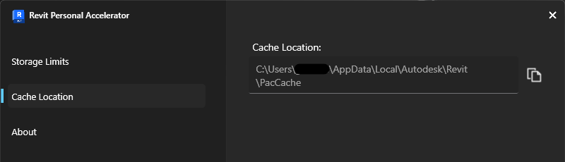 C:\Users\<username>\AppData\Local\Autodesk\Revit\Revit Personal Accelerator\