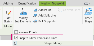 - When selected, your cursor will snap to internal points and edges created during shape editing.