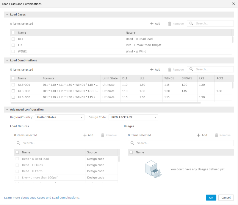 Benefit from a modernized interface to easily manage structural load cases and combinations using filters, search, and editing.