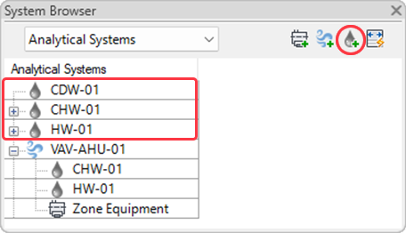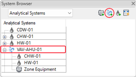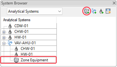 Use the tools in the System Browser to add zone equipment, air systems, and water loops.