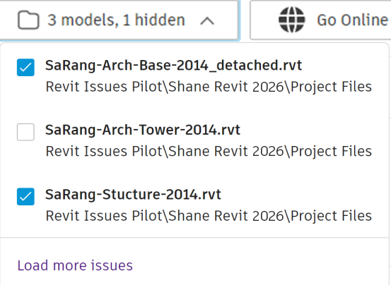 - The Load more issues button at the bottom of the list provides another way to access the Associated Models window.