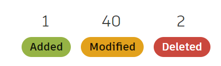 The palette displays an overview of changes, classified in 3 categories: added, modified and deleted objects. An example is shown below: