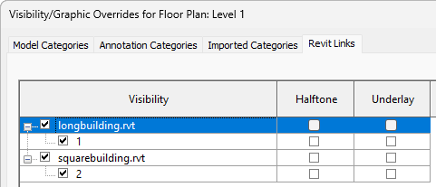 - Visibility: Select the check box to show the linked model in the view, or clear the check box to hide the linked model.