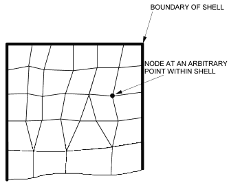 When a continuous shell is modelled using finite elements, nodes and FE edges are generally only modelling concepts and have no physical reality. Nodes can be placed anywhere within a continuous shell to define finite elements of a suitable size and shape.