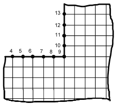 In each finite element the strain distribution is approximated by simple polynomials. The stresses within a finite element are then calculated from the strain. The finite element method will not find the peaks of stress which occur at sharp corners of a structure. In this example it can be expected that good estimates of the stress will be obtained for nodes 4 to 8 and 10 to 13. The stress peak at node 9 will be under-estimated.