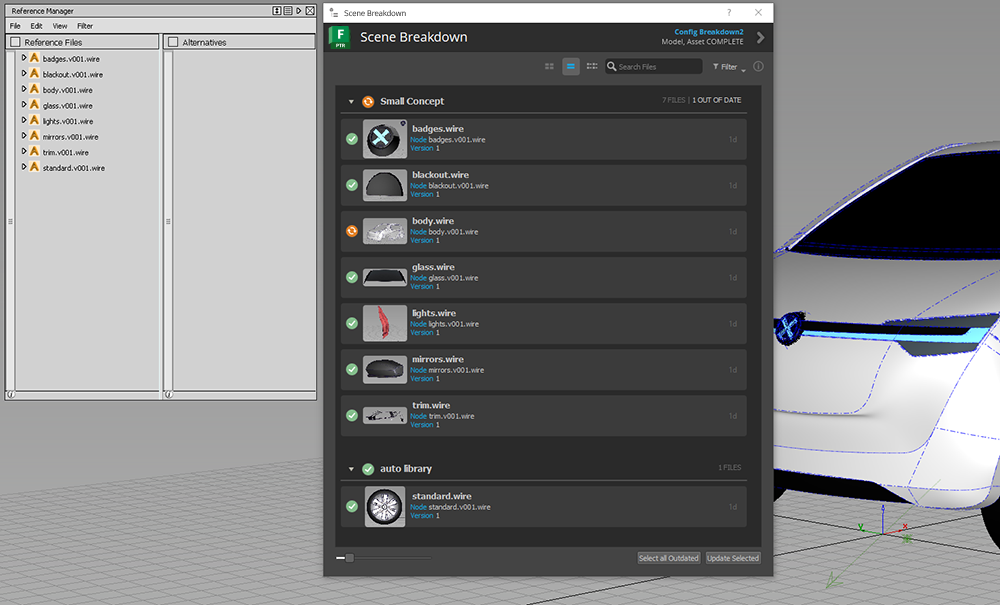 The difference between the Alias Reference Manager update and the Flow Production Tracking Scene Breakdown are as follows: