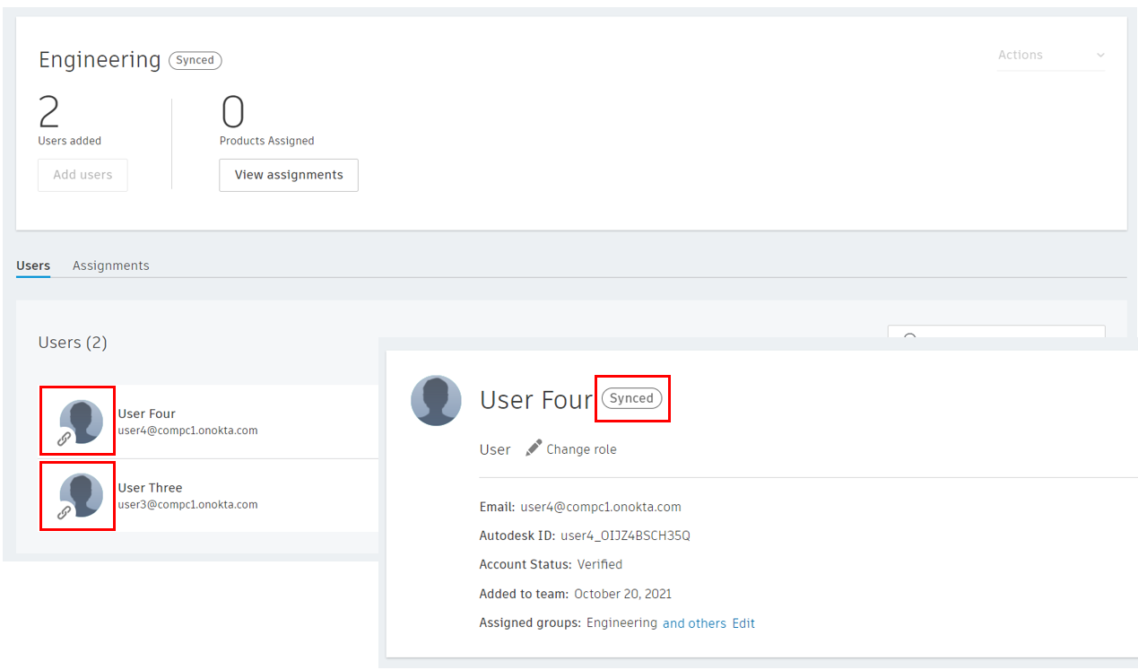 Once directory sync is set up, groups and users in your organisation's Autodesk team will be updated in your Autodesk Account.