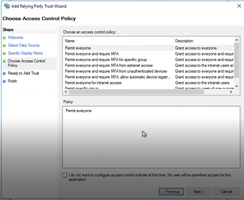 Under Access Control Policy, select "Permit everyone" and click Next.