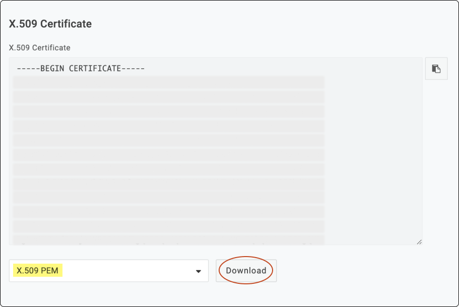 Click Download to save the '.PEM' file.