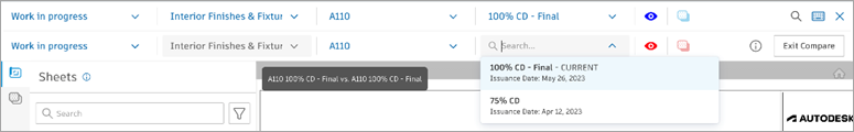 When you have finished comparing sheets, leave compare mode by clicking the Exit Compare button at the top right of the screen.