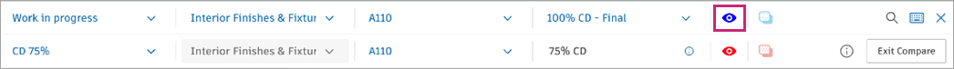 Click the eye icon at the far right of the Compare navigation bar of a compared sheet to hide or show that sheet.