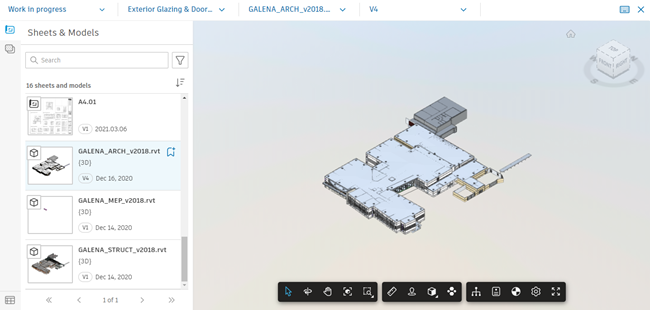 panel within the Takeoff viewer. The Sheets & Models panel shows a list of all sheets and models for your project that are available for takeoff.