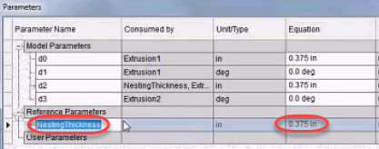 If you do this to an extrusion, Inventor Nesting creates a read-only Inventor reference parameter named Nesting Thickness and sets its value to the thickness of the extrusion.