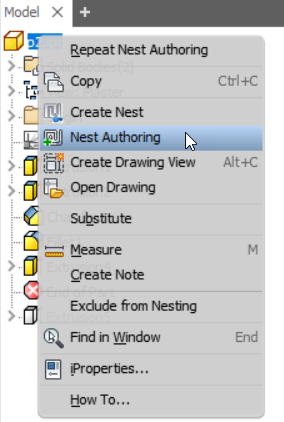 - Right-click the appropriate node in the model browser and select Use For Nesting.
