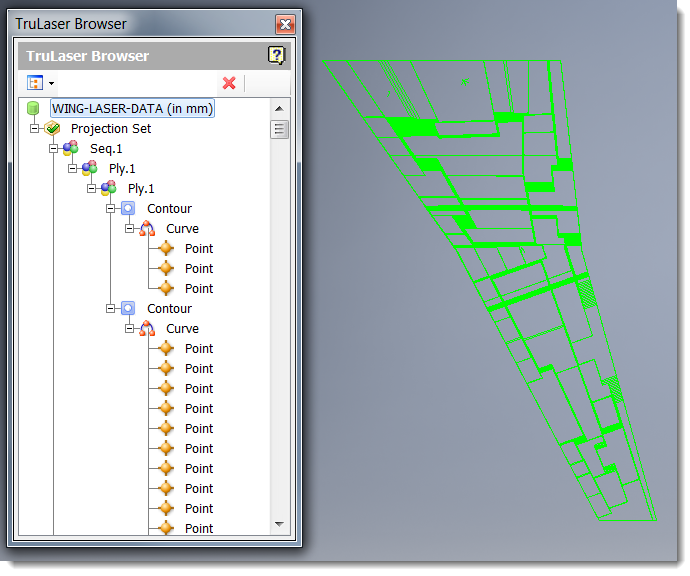 The TruLaser browser provides an easy way to see how your project is structured.