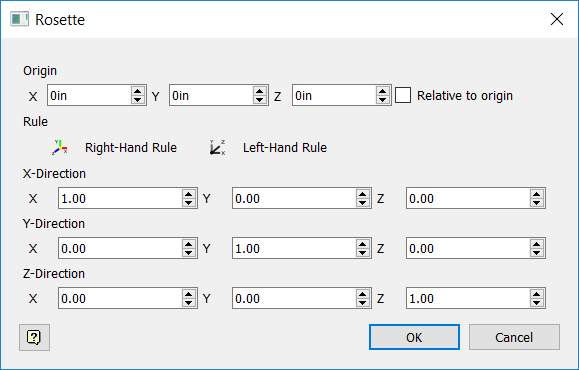 Enter values in the Origin and Direction boxes, or use the triad to modify the rosette in the application window.