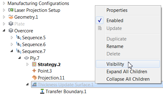 You can create calculated offsets in strategies; these are used to generate accurate fiber paths and meshes for plies, but they are not shown as surfaces in the application window and are not stored in the project as surfaces. This reduces file size but can impact performance.