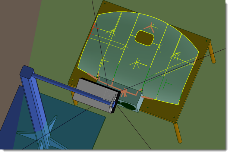Note: Obstruction simulation takes longer with complex assemblies. Every component in the assembly is tested for obstructions, and each laser projector is tested independently against each component. To shorten the computation time, you can suppress any components that you know will not cause an obstruction (such as the floor).