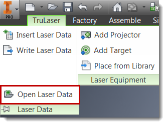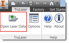 - Open Laser Data opens the data in a new file. This option appears on the TruLaser tab before you open a file and in the