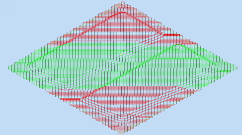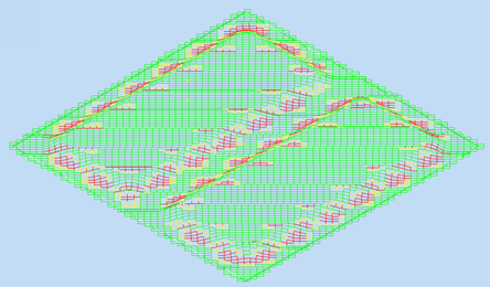 Use this to generate fiber trajectories, each of which is analyzed for the length of tows across the ply. The analysis highlights in red any areas that have shorter tow length than the defined value.