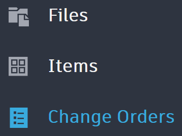 The Workspace Navigation pane, to the left of the Thin Client interface, contains three icons. Each icon represents one of the Vault object types that you can work with in the Thin Client: files, items, and change orders.